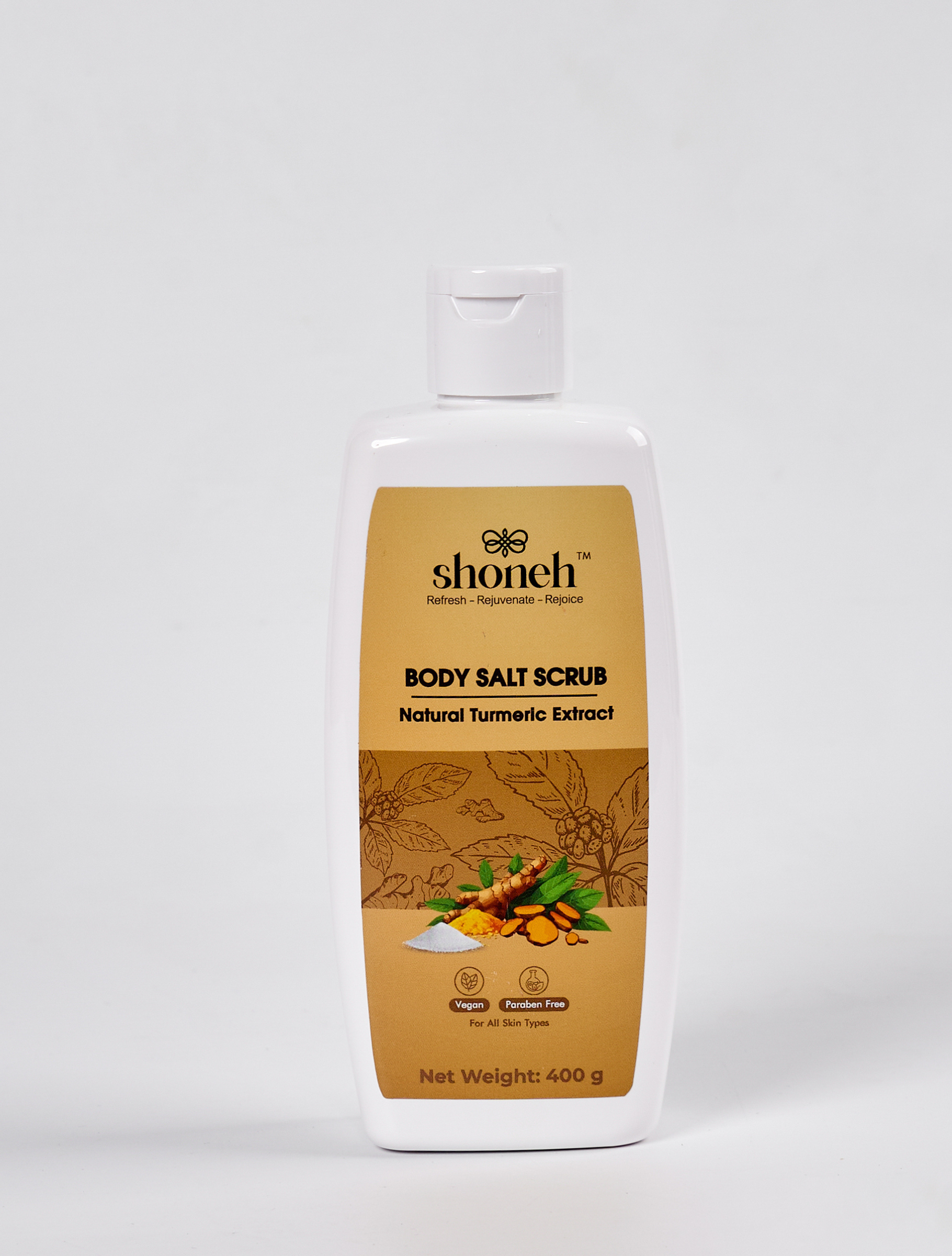 Transform your shower into a spa ritual with our creamy turmeric body salt scrub. This gentle exfoliator blends natural salt, turmeric, and zingiber root extract (a ginger-like botanical) to refresh your skin and awaken your senses.